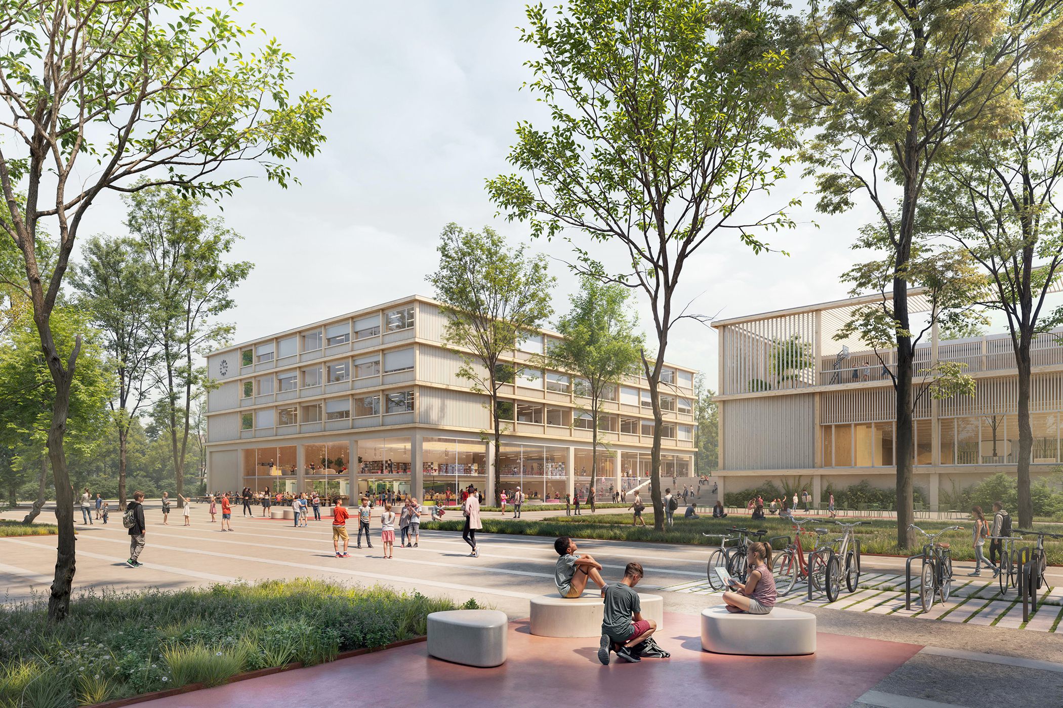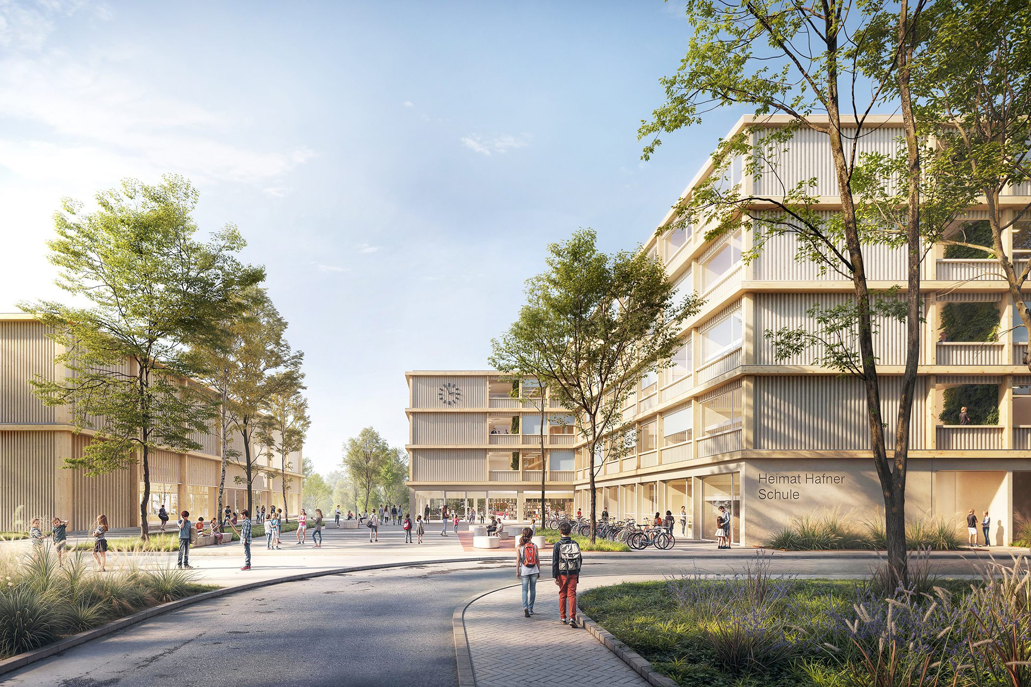Climate-neutral operation is planned for the school. Thanks to its compact form, economic use of space for circulation, integrated approach to sustainability and material-specific design, the school offers the ideal conditions for the creation of a resource-friendly, economical, and particularly long-lasting building.